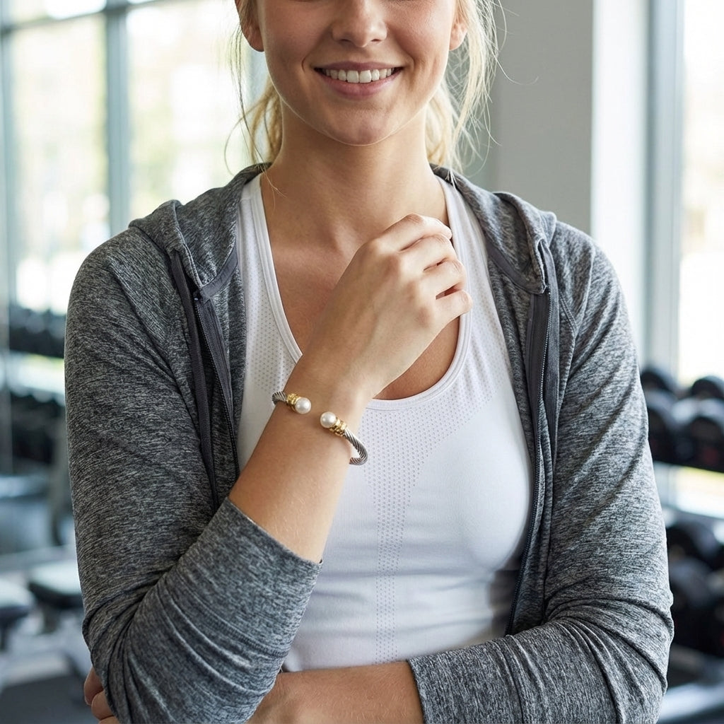 Aurelie two tone bangle with Pearl